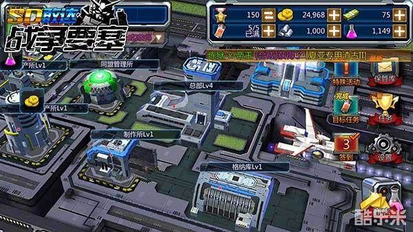 【主线任务】贯穿于整个游戏的始终。玩家可以通过游戏指导提示完成其任务,并且获得相应的奖励。例如:完成任务1-7关卡、总部升到Lv3等的主线任务,主线任务可以得到相应的M币和一定数量的金币,M币的作用可就大了,不仅可以用来抽卡满足强迫症的收集欲,同时如果你觉得基地里的建筑制造资源的速度太慢不够用,也可以去商店通过M币购买到各种资源来供你使用,甚至当你觉得建筑升级需要花费太多时间的时候,使用M币还能让你基地里的建筑马上建成,实乃居家旅行必备。在这里也提醒一句,任务里获得的M币是有限的,虽然游戏的平衡度把握的恰到好处,普通的发展同样可以获得不错的游戏体验,如果大家想要比其他玩家更快的发展基地或获得强力机体,也可以通过购买途径获取M币哟,这就要看玩家们如何抉择啦~