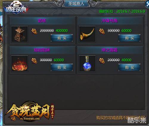 进入圣域后,活动开启后2分钟内为准备时间,只能在复活点,不能出去,这时候我们可以在战场商人处,花费一点的帮贡购买威力十足的攻城道具,(注意未使用的攻城道具无法带回本服,就是说,攻城道具看着点购买,不要买多了,不然活动结束就直接消失了,帮贡也不会返还的。有些玩家不清楚,导致浪费了很多帮贡)。