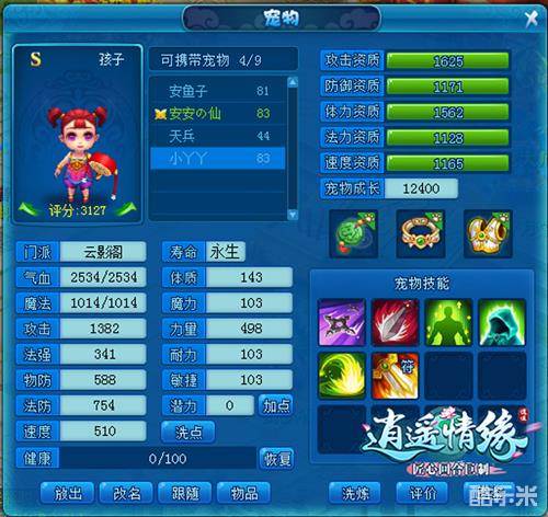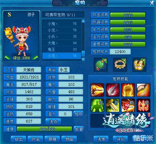 看吧,不管是资质还是技能都不输给市面上你能获得到的任何宠物,包括神兽。所以养了一个孩子就相当于有了一个非常强大的打手,可以让你的逍遥之旅顺畅许多。