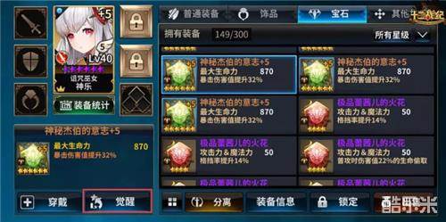 觉醒进化需要两个+5强化的6☆宝石材料与货币,进化后宝石属性不变,能力值上升。而觉醒升阶则不同,升阶后的宝石种类与属性将会随机变更。如果你自信有欧洲血统不妨试试觉醒升阶!