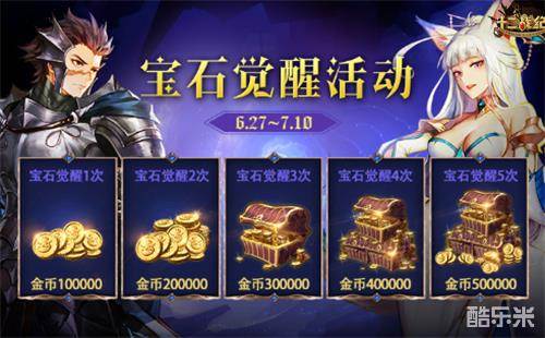 告诉你们一个好消息,6月27到7月10日,宝石觉醒活动期间,每次觉醒宝石都能获得金币奖励,加上活动金币累加,最多能收获整整150W金币!!还在等什么,赶快把手里的存货都觉醒起来!