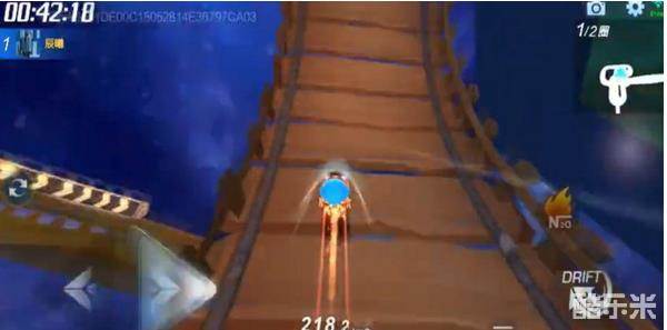 在穿过彩虹门的时候,记得一定要积攒好氮气,这样,在回转木梯这一板块就可以一路畅通无阻的冲刺,把别人远远的甩在身后。
