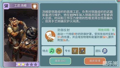 工匠汤姆(联邦守护者,SR第一肉盾护卫,技能反伤、增双防9秒护盾)