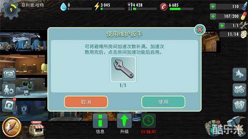 按照相应的条件把建筑升级即可,电力不够了不要担心,这个时候应该还没有解锁 15 个副本的奖励。继续打副本的同时回基地可以利用扳手道具,恢复房间的加速,获取更多的电力,也可以把扳手留到以后使用。