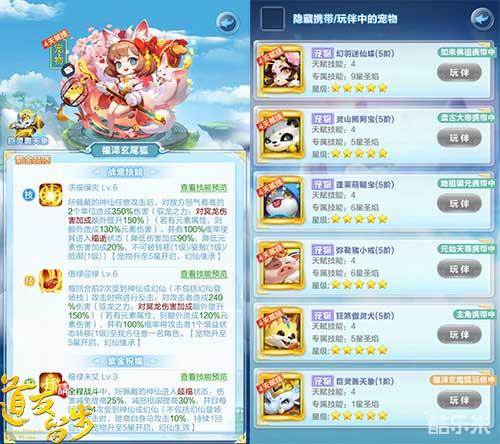 在本次资料片中,万众瞩目的紫金神宠“福泽玄尾狐”终于正式实装,有着三界第一美少女之称的小狐狸可不仅仅是颜值高,更有着超强的战宠技能和紫金宠物专属的祝福技能哟!小狐狸作为发放福利的“招财小天使”,其技能特征也是“发福利”,史上最强BUFF“延福”不仅减免伤害、抵御减怒,还能加成攻击!除此之外,万人迷小狐狸更有玩伴系统,能够召集其他宠物成为玩伴为全体上阵神仙提供属性加成!