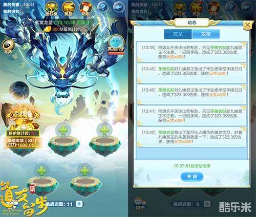 “冥龙降世”玩法作为《道友请留步》中最受玩家喜爱的玩法之一,在本次的版本更新中也有了新的突破,那就是究极BOSS紫冥龙皇来袭!最为史上最凶残的BOSS,唯有单场战斗可以直接秒杀100级冥龙或总战力达到50亿的玩家才能拥有挑战资格!当然,更高的挑战资格自然意味着更丰厚的奖励,每40秒即可获得800元宝,一夜暴富从此不再是梦!