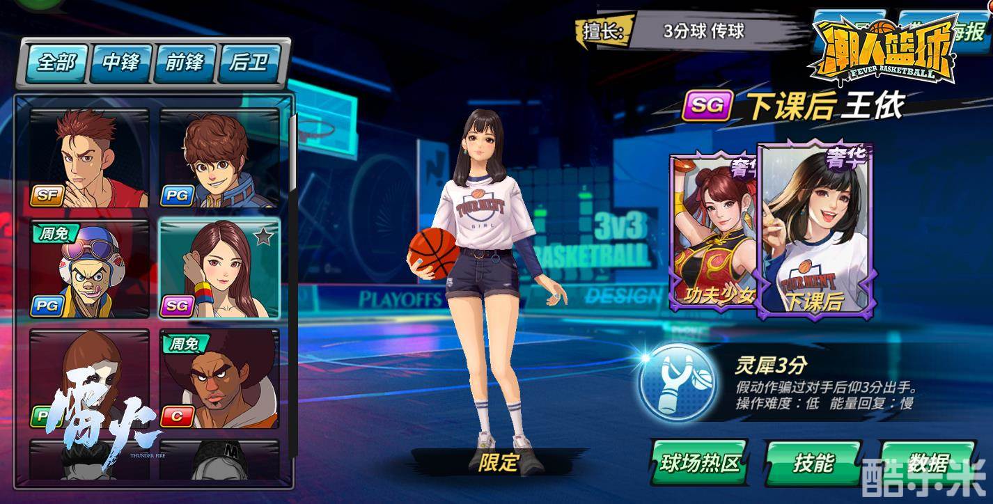 腿有多长,三分就有多准!拥有飘逸长发和温暖笑容的王依,即便在球场,也渐渐学会了如何优雅的打篮球。灵活的跑动,她是宛如精灵穿梭球场的身影;高达50的三分数值,她是寻找到机会出手如闪电的得分老手。王依的爆发技灵犀3分,会通过假动作骗过对方后迅速出手后仰投篮,潮篮er们,可别被美丽的外表骗了噢!