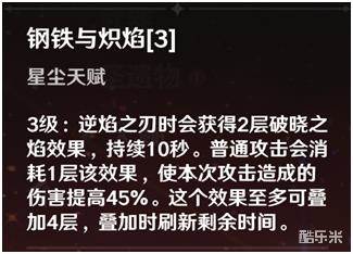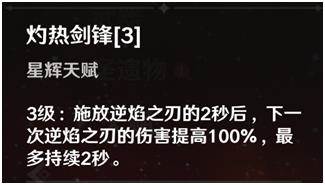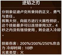 逆焰之刃,拥有一定的位移和长达4秒的缓冲,意味着使用每一段后都有比较宽松的时间来使用普通攻击对敌人进行追击提高连段伤害。