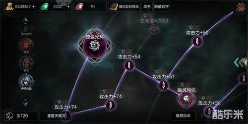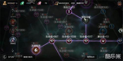 该天赋核心点是诅咒技巧,能够将一技能CD缩减为1s,然后灵魂制造又让一技能释放后周围多出两个灵魂,便于更快的将灵魂层数叠加到5。