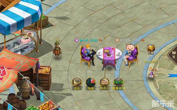 玩家可邀请其他玩家在主城中央共享精致点心,玩法中持续获得经验,1次持续15分钟,过程中还能进行送礼、捣蛋、加点心等有趣互动。