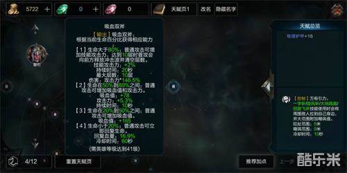 嗜血战士流派则是强化平A输出的一个流派,最终天赋可以看到生命值低于20%时普攻会按百分比回复生命,基本上只要不被控住秒掉就极难被击杀。这个天赋的输出和生存主要都靠普通攻击,所以最终伤害加成和攻速非常重要。当然,你也需要注意走位和操作,否则被控制技能控住后果可能比其他流派更加严重。