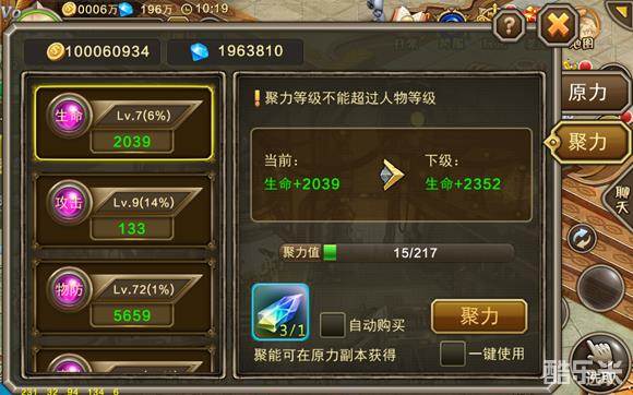 2、聚力需要消耗聚能,不同聚力等级需要消耗不同阶别的聚能;