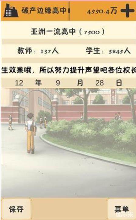 从这个时期开始,你要控制老师的数量和建筑的数量。比如当你1w每个年级招1000人的时候,突然等级提升了。那就要及时涨学费,提高利润减少成本和招生数。然后再升级,就是1w2的学费每年也有1000人(我比较建议卡这个阶段)。卡阶段主要是因为土地的价格。增加2500土地之后差不多刚好塞下3000学生。卡阶段提高利润买地再扩张。再来这个阶段人数比较好算。