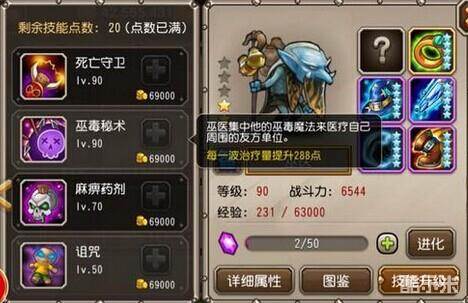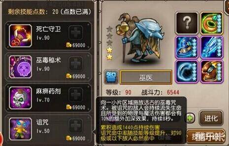 根据上面的技能满级以及下面的图片来看,巫医现在可以先放在手中,等高手开发出组合用法之后再做打算,指不定是第二个猴子呢!