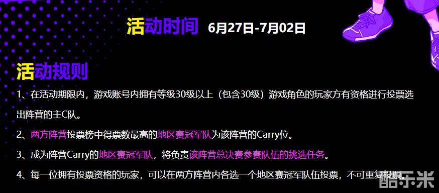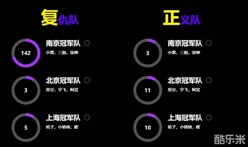 符合条件的玩家可以在活动页面进行投票选出心仪的阵营CARRY位,活动结束后投票最高的两支战队将分别代表复仇队以及正义队,目前排行榜中复仇队南京冠军领先,正义队中武汉冠军领先,会不会出现反转呢?