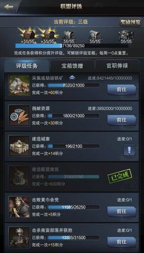提升联盟评级的评级任务涵盖游戏玩法的方方面面,其中,南蛮任务和黄巾任务提供的积分较多,而捐献任务不一定捐满也能把联盟评级提升到第六阶段。因此,只要是较为活跃的联盟,通过积极刷野怪,也都可以把评级提升到第六阶段。