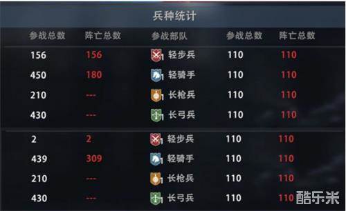 自古枪兵幸运E,是咸鱼突次的代名词,但是在权利的游戏汇总,枪兵的地位却是大大提高,堪比咸鱼翻身,游戏初期默认阵型步骑阵列中,枪兵作为整个阵线的第三排,可以说是相对于弓兵来说,最安逸的输出角色,毕竟站着的才有输出。从下面的战报也可以看出来,枪兵的输出位置非常安全,前排再少都没损伤。