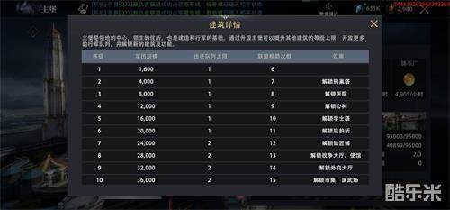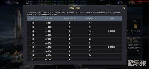 显然主堡等级越高,升级强化后军团规模、出征队列上限、联盟帮助次数等都会有相应提升。而这些都是我们实力强化的基础。如同等条件下,出征队列上限越高,我们可获取的资源等也会越多。
