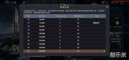 领地内有着20+建筑,主堡升级的前置建筑却不足10个。我们在前期,可优先考虑先升级升级主堡前置建筑城墙、兵营等(通常这些建筑为领地核心建筑),可一定程度上加速主堡的升级,强化实力的提升。
