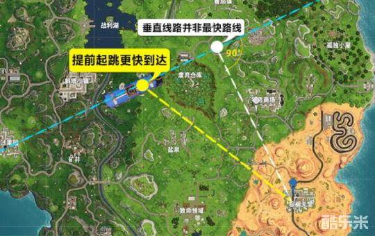 记住,航线和标记点之间并不是垂线最快!在距离目的地较远的情况下,不需要等到距离目标最近时跳下,提前一些起跳会更快到达。