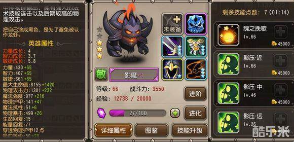 培养到66级,技能也当前满级,相信评测还是有一定说服力的吧~不服不辨。官方基本情况介绍:中排物理输出,拥有强大的法术技能连击以及后期较高的物理攻击力。没错,影魔的特点就是法术连击,什么是法术连击呢?先看看他的技能: