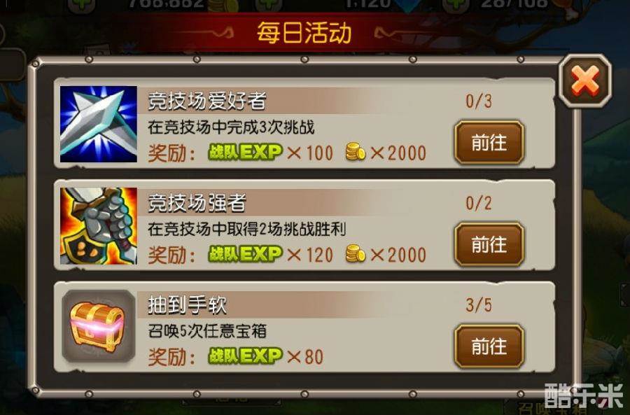 5.多留意战队现有经验值,如果快要升级就不要领每日活动的经验,先把体力打得比较少再领