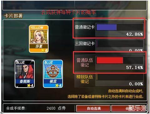 玩家可以在徽记卡合成面板中放入对应徽记卡查看到合成获得普通队伍徽记卡,普通徽记卡,三国徽记卡的概率,加入不同徽记卡合成会对获得卡片种类产生影响。