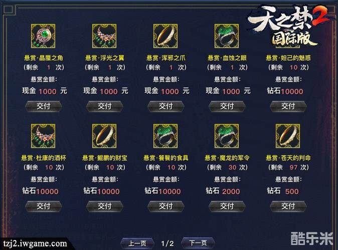 在《天之禁2国际版》里能赚钱已经不是什么新鲜事了,本次内测开启,装备悬赏机制得到全面升级!不论通过何种渠道,只要获得带有“悬赏”前缀的特殊装备,即可到五方城悬赏大使处交付,获得丰厚的现金奖励!在游戏里,吹着小风喝着小酒轻轻松松把钱赚,何乐而不为呢?