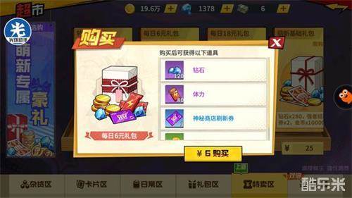每日的6元礼包,有条件的话建议一定买,这游戏没有比体力更重要的东西。