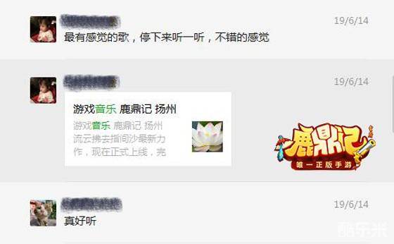 在微信群里,大家就纷纷聊起了音乐,“预约的时候一听到扬州城的bgm就泪目了,都是曾经的青春啊”“我最喜欢呆在昆明中间那里听《彩云之南》”、“以前玩《鹿鼎记》我都是开音乐的,不玩之后,玩其他端游都没开过背景音乐了”、“我最喜欢扬州夜晚”……