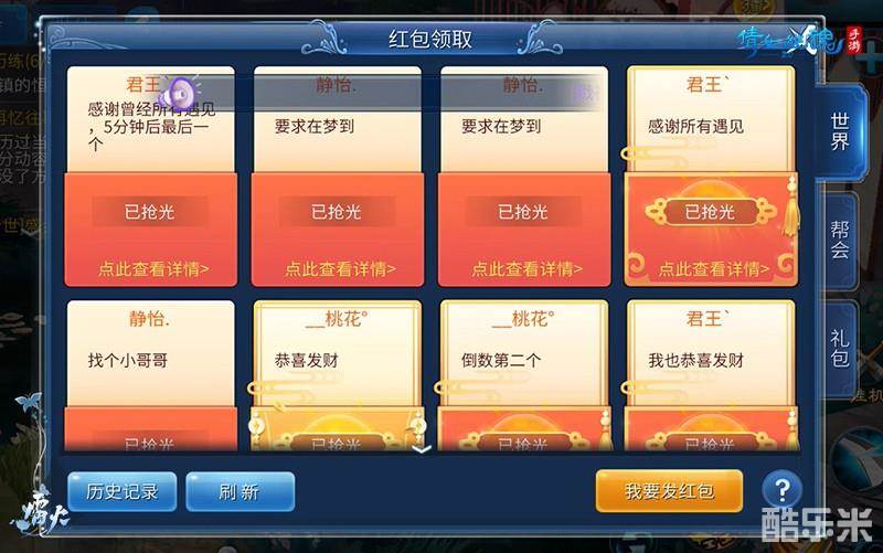 昔日大神强势回归怎能空手而来?来到新服花间舞的第二天,他们便掀起了一场了“红包大战”,一时间点燃了三界所有玩家们的热情,引得众人围观哄抢。在此期间不断有玩家加入这场“红包雨”之中,即使狂欢过后粉丝们热情依然不减,纷纷给大神送出祝福,回忆过往种种高光时刻。
