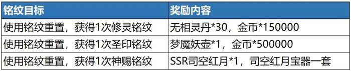 活动时间内重置宝器铭纹,达到指定要求即可领取奖励。