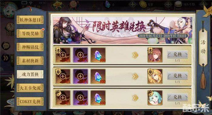 活动期间使用多余妖灵师兑换指定妖灵师。