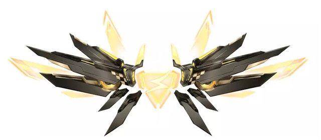 炫酷的机甲风羽翼,在赛场上散发出金闪闪的光芒。