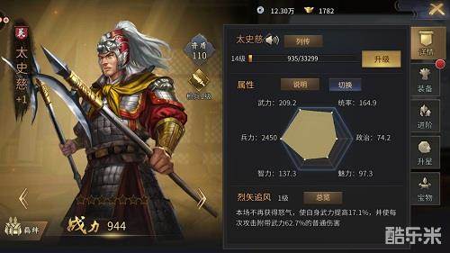 升级是提升武将战斗力主要方式。武将的能力属性会随着等级提升而增加,武将的资质也和武将的属性成长息息相关,高资质的武将在升到高等级后,在属性上有非常明显的优势。最后,还有一点需要各位主公特别注意!如果武将的士兵数归零,那么该武将就会失去战斗力,所以战斗中必须留意武将的带兵数。
