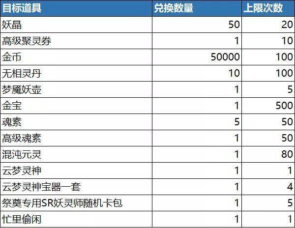 活动时间内使用妖灵师分解所得元灵兑换指定珍稀妖灵师。