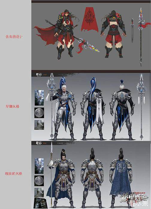 要做到这些很难,这也是造成武将造型频繁更新的原因。我们常常需要极大的决心和勇气,才能不顾虑其他来调整美术造型,并不是说我们容易动摇或没有信心,而是美术创作本身的魅力就在于很多不确定性,往往需要做到很高的完成度,甚至在测试中观察实际效果,我们才能清楚是否达到我们的要求。