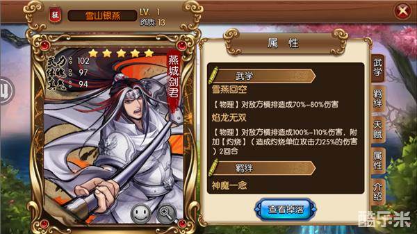 武学特性:都是横排攻击,大招击中必燃烧的关系,系数其实该有150%~160%。