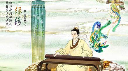 “绿绮”是汉代著名文人司马相如弹奏的一张琴。司马相如原本家境贫寒,徒有四壁,但他的诗赋极有名气。梁王慕名请他作赋,相如写了一篇“如玉赋”相赠。此赋词藻瑰丽,气韵非凡。梁王极为高兴,就以自己收藏的“绿绮”琴回赠。“绿绮”是一张传世名琴,琴内有铭文曰“桐梓合精”,即桐木、梓木结合的精华。相如得“绿绮”,如获珍宝。他精湛的琴艺配上“绿绮”绝妙的音色,使“绿绮”琴名噪一时。后来,“绿绮”就成了古琴的别称。