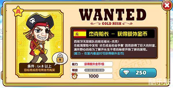 解锁条件:玩家等级在8级以上的时候可以用金币购买,也可以直接花250钻石购买