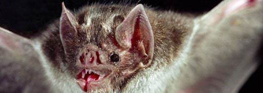 吸血蝙蝠是哺乳动物中特有的吸血种类。分布在美洲中部和南部,体型小,最大的体重不超过30——40克。头骨和牙齿已高度特化,颊齿在数量和大小上趋于减少(小),是最特化的种类。上犬齿特大且呈刀状,均有异常锐利的“刀口”。臼齿小无机能,拇指特长而强,后肢强大,能在地上迅速跑动,甚至能短距离跳跃。吸血蝙蝠飞行力强,无尾,具鼻叶,因而曾隶属于叶鼻蝠科,是名副其实的以血为食的类群。吸血蝙蝠的寿命较长,平均寿命为12年。一般来说一只吸血蝙蝠一生所吸的血达100升左右。2010年1月,秘鲁亚马孙地区发生吸血蝙蝠连续咬人事件,引起当地居民的极大恐慌。亚马孙地区卫生局透露,近几周内已有至少7名儿童被吸血蝙蝠咬伤后狂犬病发作死亡。