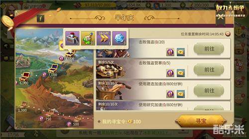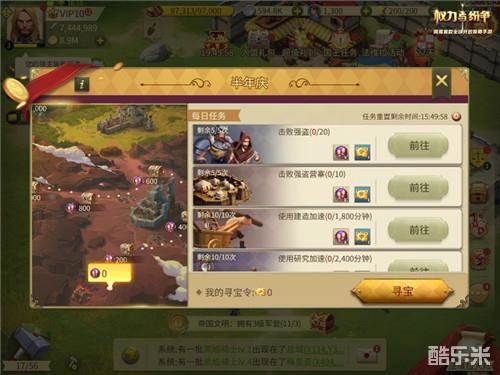 在活动期间,领主每天通过完成战胜强盗、强盗营寨,努力建设城市并使用建造和研究加速,与其他城市进行贸易、训练精锐士兵等每日任务均可以获得珍贵的寻宝令,同时也能积累活跃度。