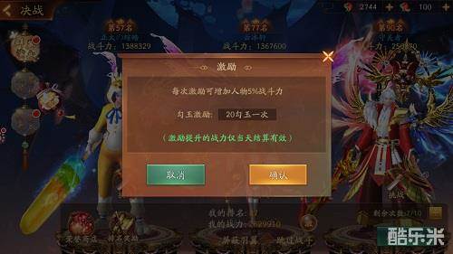 玩家每天有10次挑战群英殿的机会,每天00:00点后重置挑战次数。挑战次数耗尽后,玩家可额外购买挑战机会,每次花费10勾玉,最多购买5次,每天00:00点后重置购买次数。除此之外,玩家可通过激励提升战力(只在群英殿有效),每次激励消耗20勾玉,可提升玩家5%的战力,每天最多可激励10次,每天00:00后重置激励效果。
