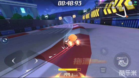 拖漂操作在这里非常重要,使用拖漂操作可以在快速过弯的同时,积攒出大量的氮气,这也是完成考试的关键!