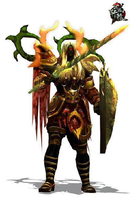 天爵——手持剑与盾,造型很像《决战轩辕》中的战士,不过巨型的背部纹饰充分展示其作为BOSS的强大实力。玩家首次遇到他是在药谷地图中作为NPC指引剧情。后续,玩家还会在充满戈壁风情的西戎地图遇上,开启获取华夏之魂称号的支线任务。