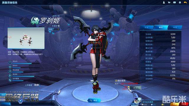 玩家可以在游戏中直接查看英雄属性。“罗刹姬”是一个机动性与爆发较强的英雄,不错的暴击率与暴击伤害,有着较高的耐力值与耐力恢复速度,以及较为不错的以移动速度,生命值与防御较低,以上种种数据表明,本英雄适合高移动战斗,惧怕被人连招控制,不适合与敌方英雄正面硬拼!
