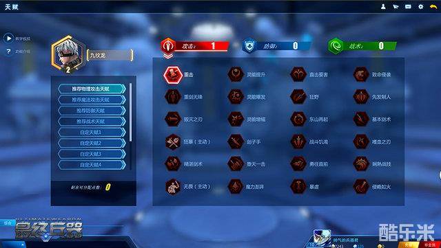 天赋推荐:依然是推荐蓝色防御天赋,理由同上将生存能力提高到最好。
