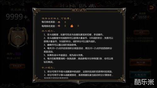 每一位到达第三章关卡的玩家就会自动开启战斗殿堂系统,通过点击战斗殿堂的图标就能进入战斗殿堂的准备大厅啦,左边显示玩家当前的排名,排名直接影响可以领取的奖励和战阶,右边则是挑战卷和排名榜以及奖励兑换系统,挑战券是战斗殿堂内容“玩耍”的唯一凭证,每一次战斗消耗一个挑战券,也可以直接一次性消耗五个挑战券来开启五倍战斗奖励,当然如果不是对自己有十足信心的小伙伴们还是一个一个来稳扎稳打的好。