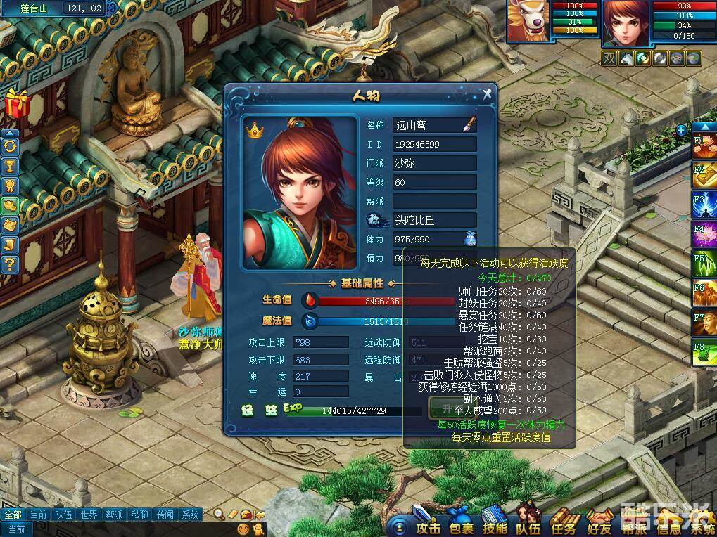 所谓活跃度,是玩家在游戏中完成各种任务时获得的积分,每日活跃度获得的方式有很多,比如完成师门任务,悬赏封妖,江山挖宝,下副本做任务链等等,这些统统能获得数值不等的活跃积分!