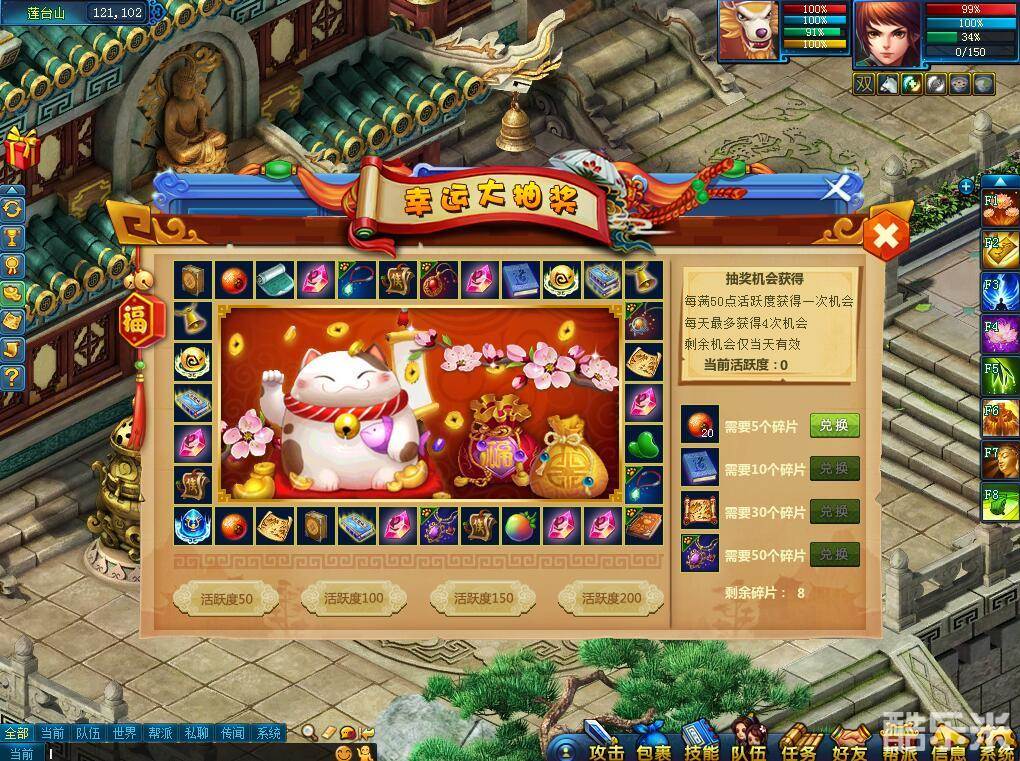 每获得50点活跃度即可点击进入幸运抽奖页面进行抽奖啦!看到这琳琅满目的奖品池是不是很激动呢?运气好的话,获得神兽之魂可就赚大发啦!这些奖品很多都可以换成画币,可以说是多劳多得,你越勤奋获得奖励的机会越多!
